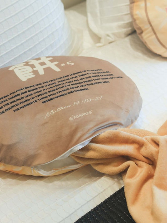 二魚五餅 二合一抱枕毯|馬太福音14:19・恩典奇蹟|辦公室恩物・午睡神器・抱枕空調毯兩用