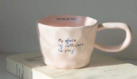 恩典足夠馬克杯|哥林多後書12:9・我的恩典夠你用|手捏感長柄杯・我今日成了何等人/恩典足夠款・辦公室靈修伴侶
