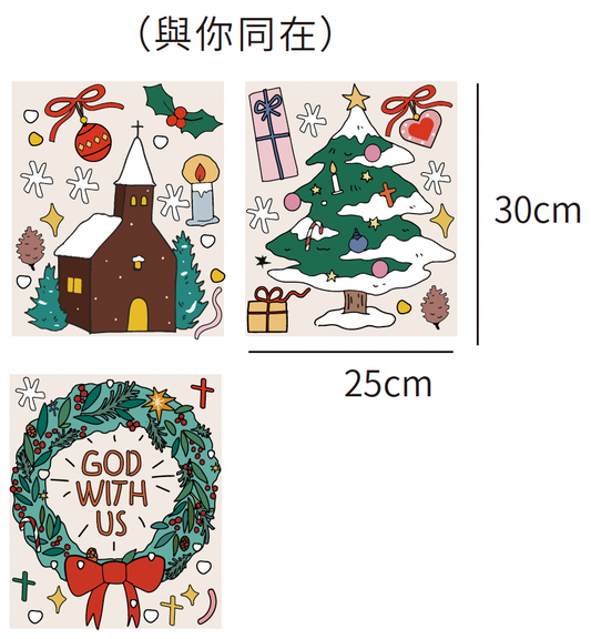 CHRISTMAS 靜電窗貼|聖誕快樂・與你同在|免膠自黏・窗戶佈置・鏡面裝飾・福音預工