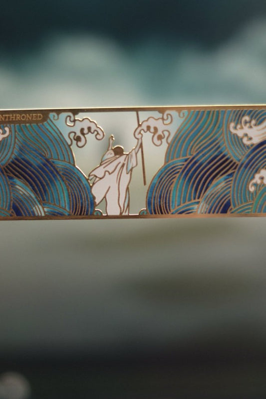 紅海分開金屬書籤|詩篇29:10・耶和華為王|鏤空工藝・彩繪波浪・聖經伴讀
