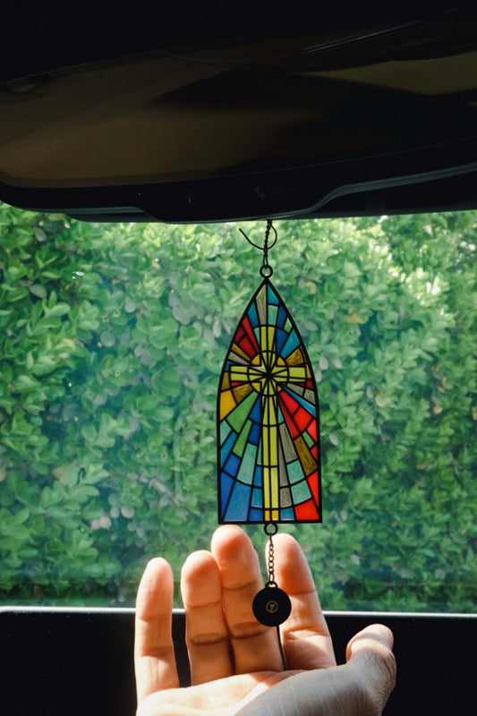 榮耀GLORY彩窗車內掛飾|路加福音2:30・看見救恩|教堂花窗設計・90色塊光韻・合金框架