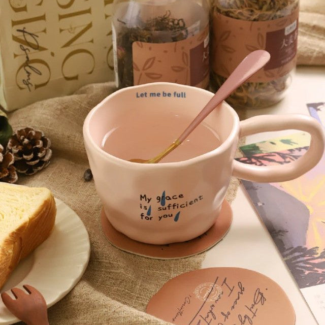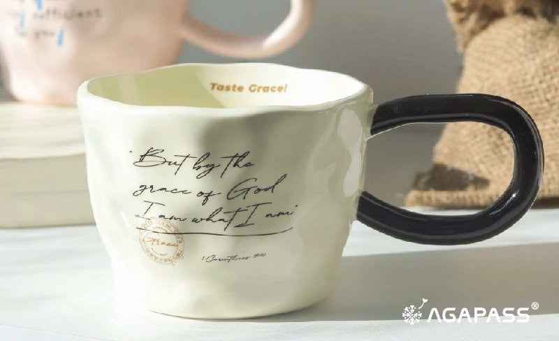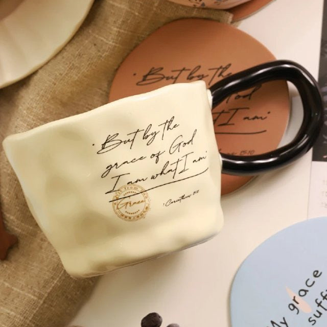 恩典足夠馬克杯|哥林多後書12:9・我的恩典夠你用|手捏感長柄杯・我今日成了何等人/恩典足夠款・辦公室靈修伴侶